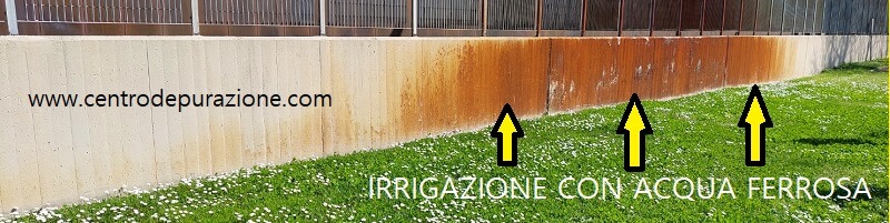 Esempi di irrigazione con acqua ferruginosa ricca di ferro e manganese